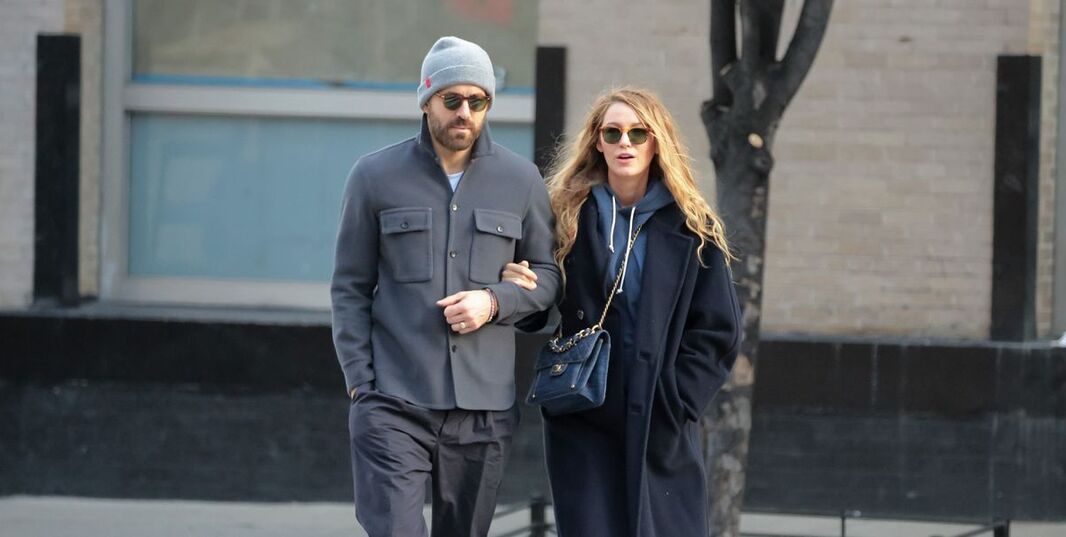 On a Saturday, Hollywood couple Ryan Reynolds and Blake Lively were spotted arm-in-arm in New York City's West Village. The pair had enjoyed a dinner date at Buvette restaurant before taking a leisurely stroll. Lively, known for her role in Gossip Girl, looked effortlessly chic in wide-legged denim pants paired with a black and purple sweater and a white T-shirt. She completed her outfit with a long black overcoat and white platform shoes, and carried a brown leather purse.